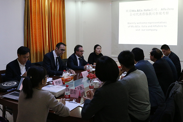 11月12日,Ma.&Co.Italia公司、Alfa Zero公司代表一行4人蒞臨我公司參觀考察。公司董事長兼總經(jīng)理程曉華、總經(jīng)理蔡孝鋒、財務(wù)總監(jiān)武繼峰隨行陪同。 來訪代表先后來到位于臨沂市國家高新區(qū)新華路西段的公司新廠址、科技產(chǎn)品展廳和科研實驗室,現(xiàn)場了解了公司的建設(shè)規(guī)模、施工情況和新產(chǎn)品研發(fā),對我公司產(chǎn)品和服務(wù)表示一致稱贊。最后,來訪代表與公司領(lǐng)導(dǎo)在會議室進行了親切交流,并希望與我公司建立長期合作關(guān)系。